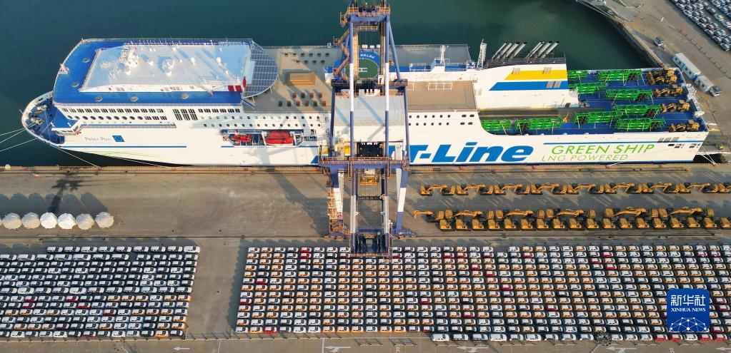 12月7日,出口商品車在山東港口煙臺港集結(jié)裝船(無人機照片)。新華社發(fā)(唐克 攝)