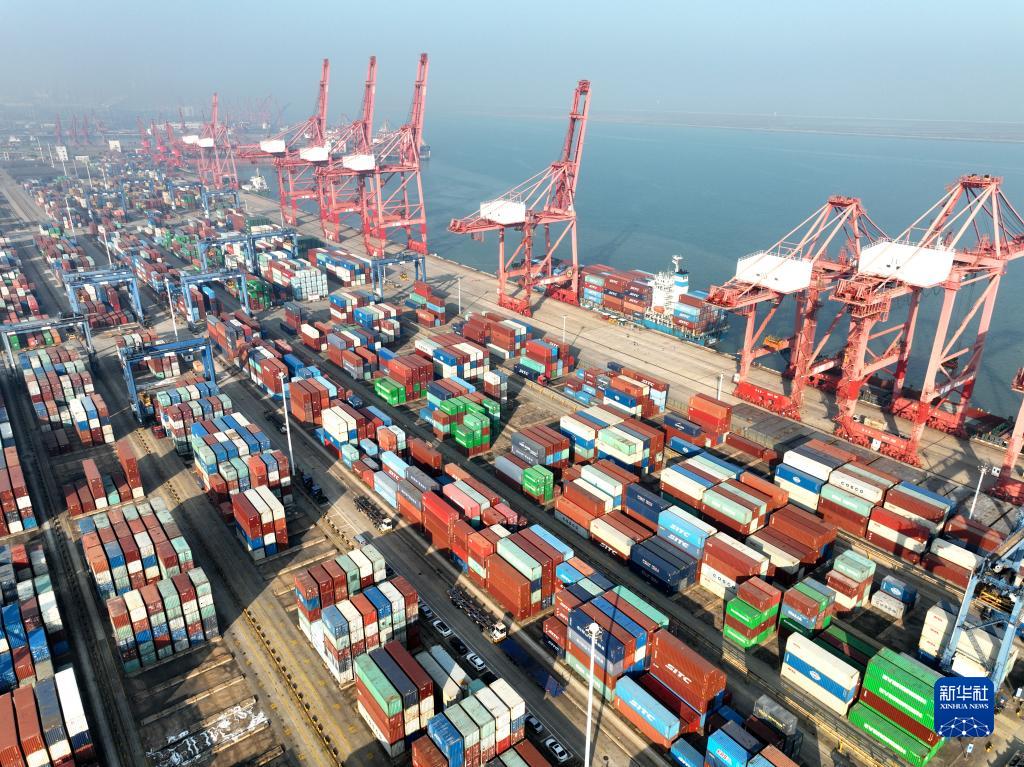 12月7日拍攝的江蘇連云港港集裝箱碼頭裝卸作業(yè)區(qū)(無人機照片)。新華社發(fā)(王春 攝)