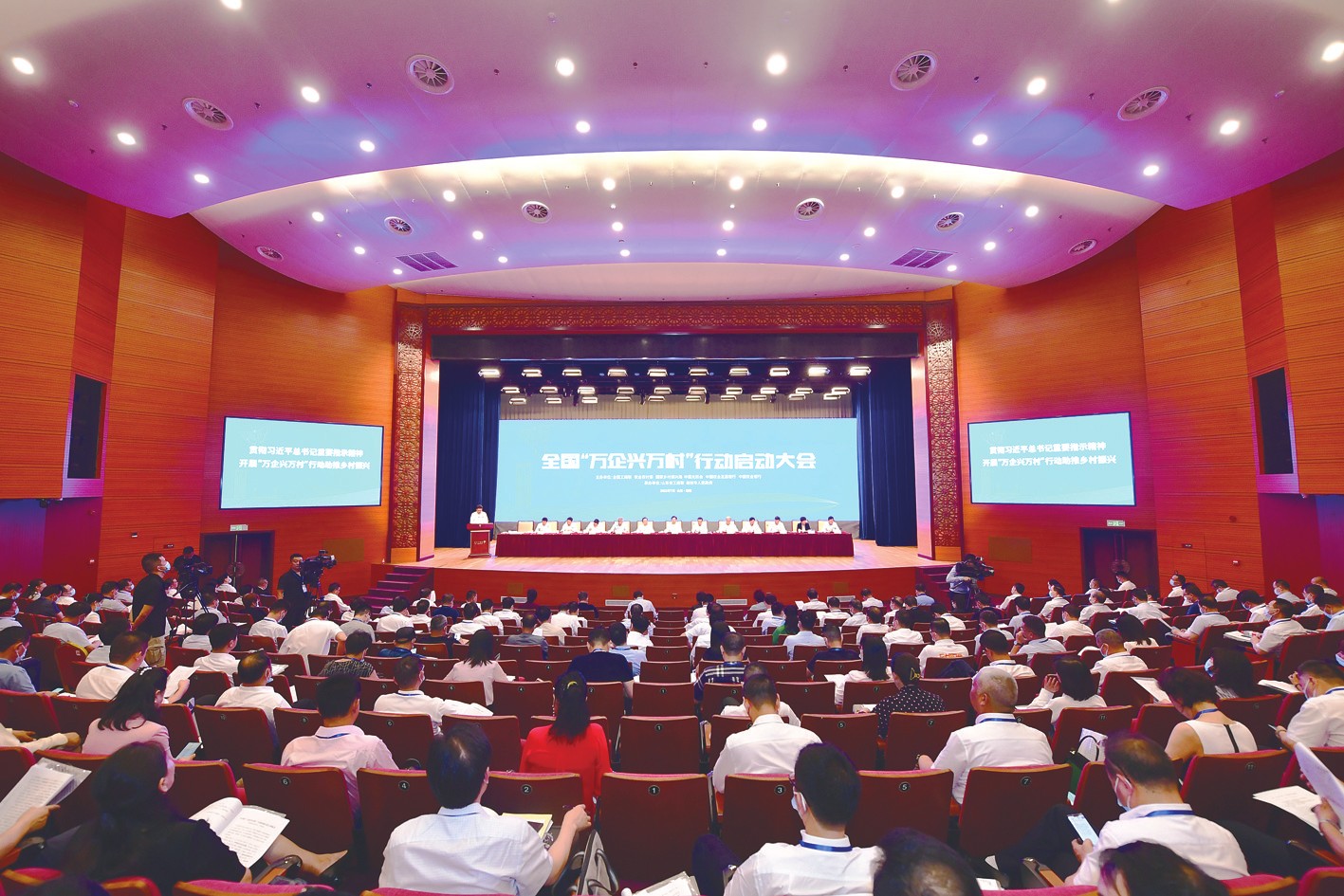 2021年7月16日,全國工商聯(lián)、農(nóng)業(yè)農(nóng)村部、國家鄉(xiāng)村振興局、中國光彩事業(yè)促進(jìn)會、農(nóng)發(fā)行、農(nóng)行等六單位在山東濰坊共同召開全國“萬企興萬村”行動啟動大會。本報(bào)記者張雷/攝