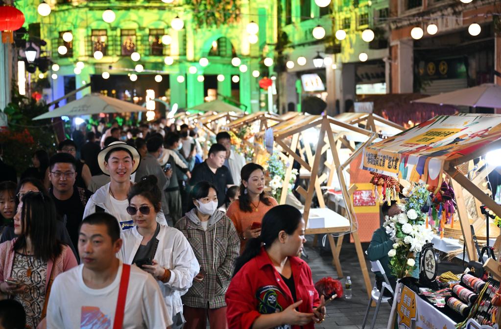 2月4日,游客在海口騎樓老街逛市集。新華社記者郭程 攝